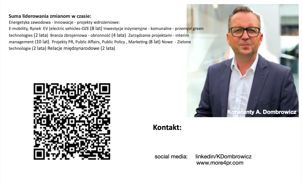 ENERGY | E-MOBILITY | INNOVATION | STRATEGY | BUSINESS DEVELOPMENT | MANAGEMENT | GREEN TECHNOLOGIES |PR | PUBLIC AFFAIRS| CORPORATE ID | AUTOMOTIVE EV | DESIGN & CAMPAIGNS | GOVERNMENT RELATIONS | MARKETING | KOMUNIKACJA | DEKARBONIZACJA TRANSPORTU EV (ELECTRIC VEHICLES)