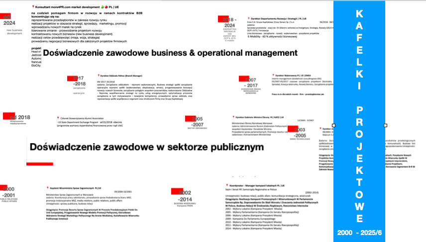 W mojej osi czasu pracy, ponad 20 lat - przekrojowo miałem zaszczyt pracować, reprezentować, współpracować w różnych obszarach z instytucjami publicznymi i biznesowymi.