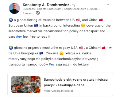 ENERGY | E-MOBILITY | INNOVATION | STRATEGY | BUSINESS DEVELOPMENT | MANAGEMENT | GREEN TECHNOLOGIES |PR | PUBLIC AFFAIRS| CORPORATE ID | AUTOMOTIVE EV | DESIGN & CAMPAIGNS | GOVERNMENT RELATIONS | MARKETING | KOMUNIKACJA | DEKARBONIZACJA TRANSPORTU EV (ELECTRIC VEHICLES)