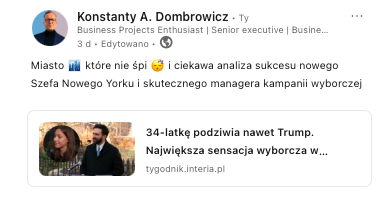 Za te możliwości serdecznie dziękuję, wiele to dla mnie znaczy. Dzięki nim poznałem fantastycznych, pozytywnie nastawionych do świata Ludzi lubiących zmiany i progress dla działania w fundamentalnych sprawach dla przyszłego rozwoju 🇪🇺🇵🇱, gdzie MY i Wspólnota znaczy więcej, a wartość pracy oparta jest na pasji tworzenia - kreowania oraz ponadnormatywnym zaangażowaniu w wykonywaniu powierzonych do realizacji projektów: