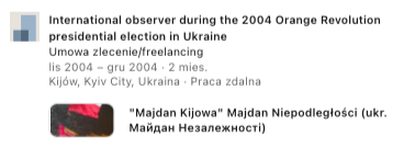 2004 Obserwator - wybory prezydenckie na Ukrainie podczas "pomarańczowej rewolucji" UKR